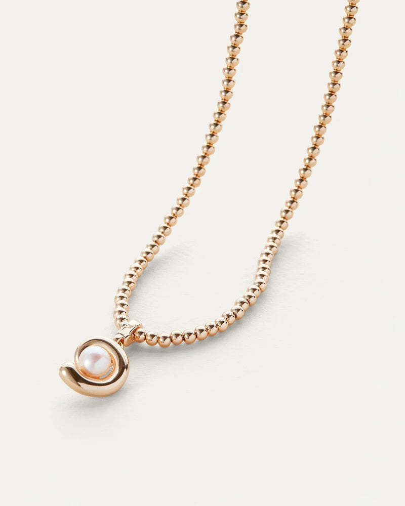 A modern twist on a beaded necklace, with a detachable glass pearl pendant that makes a statement.