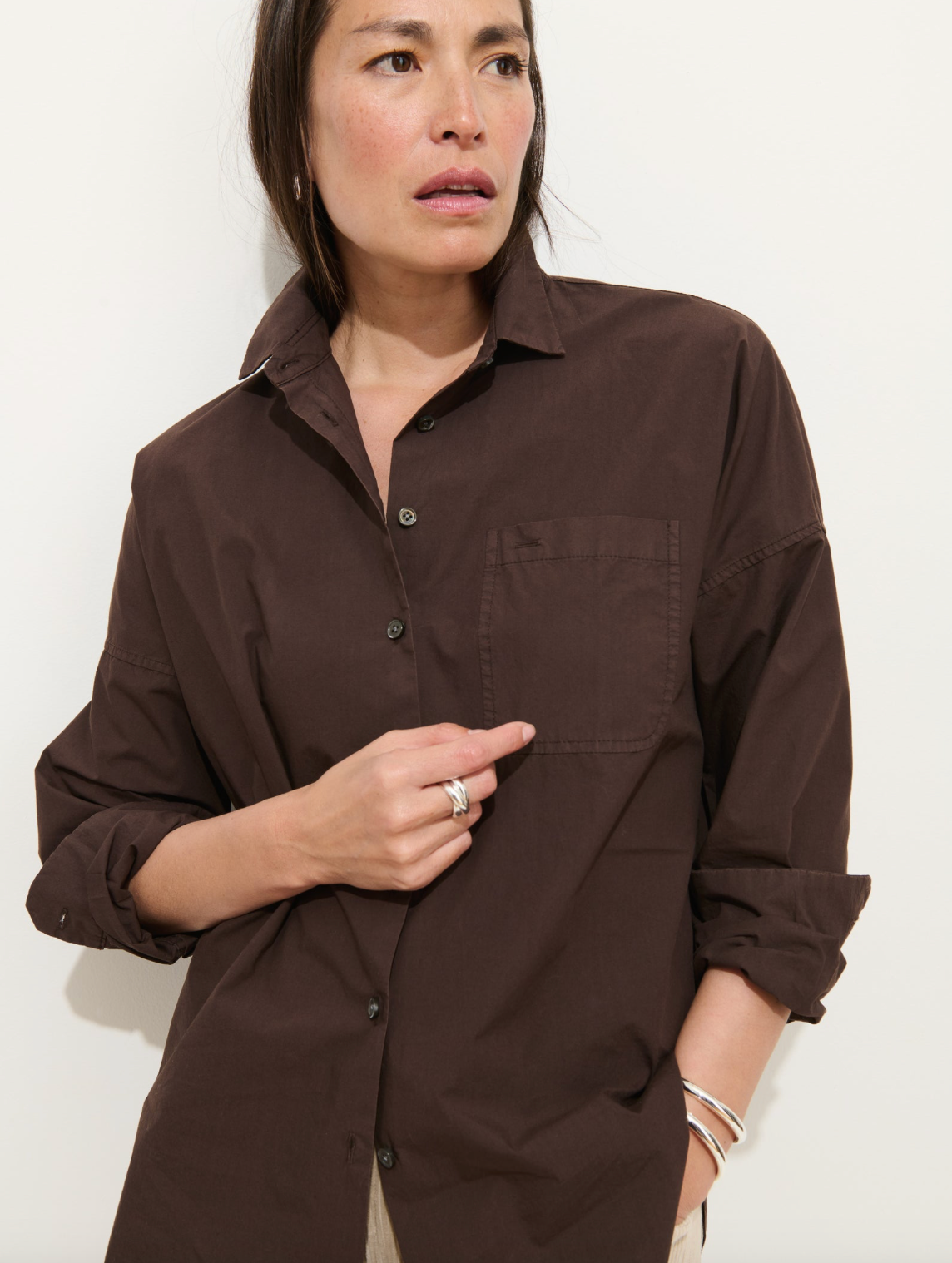 Jo Shirt In Paper Poplin Dark Chocolate