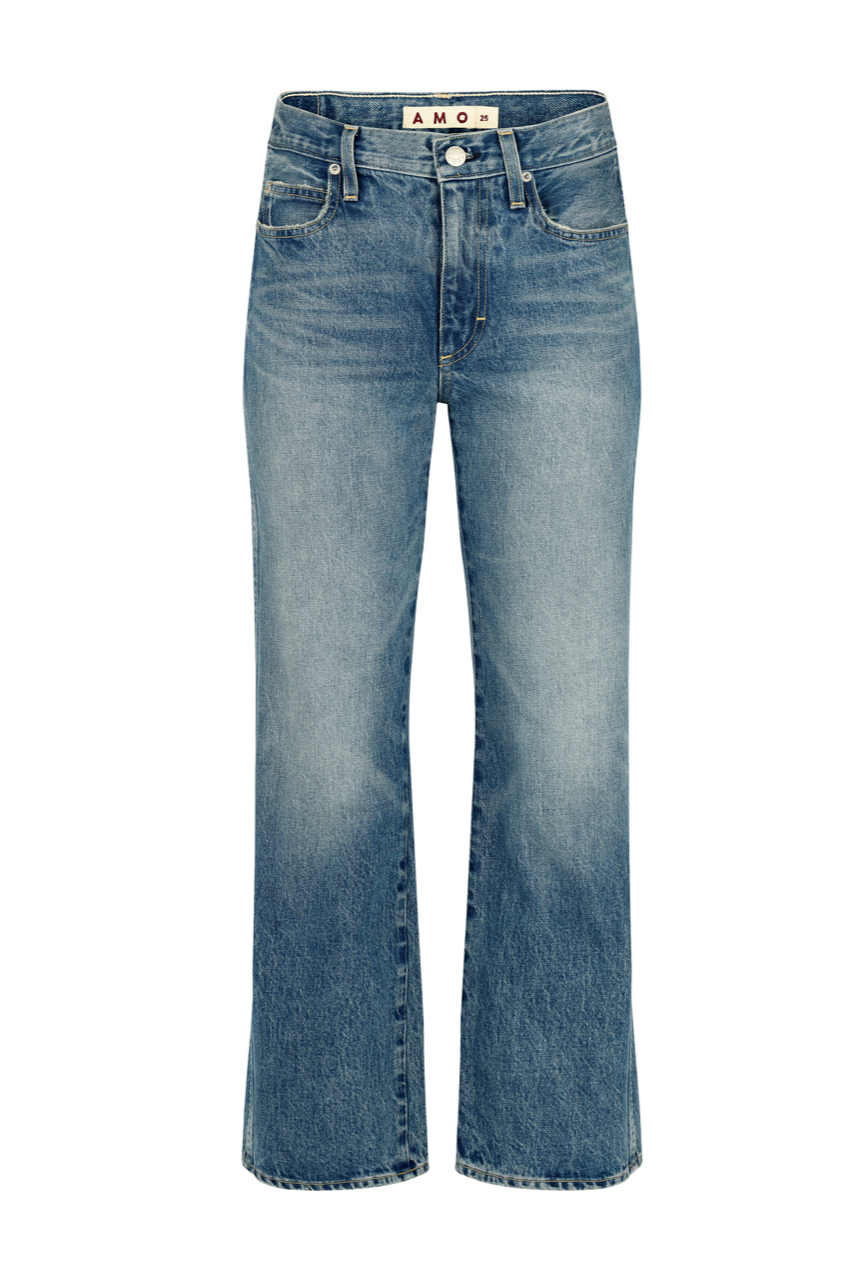 Mid rise with a relaxed fit through the hip, this jean features a subtle, easy flare and a cropped length for that effortless look. Zip fly.