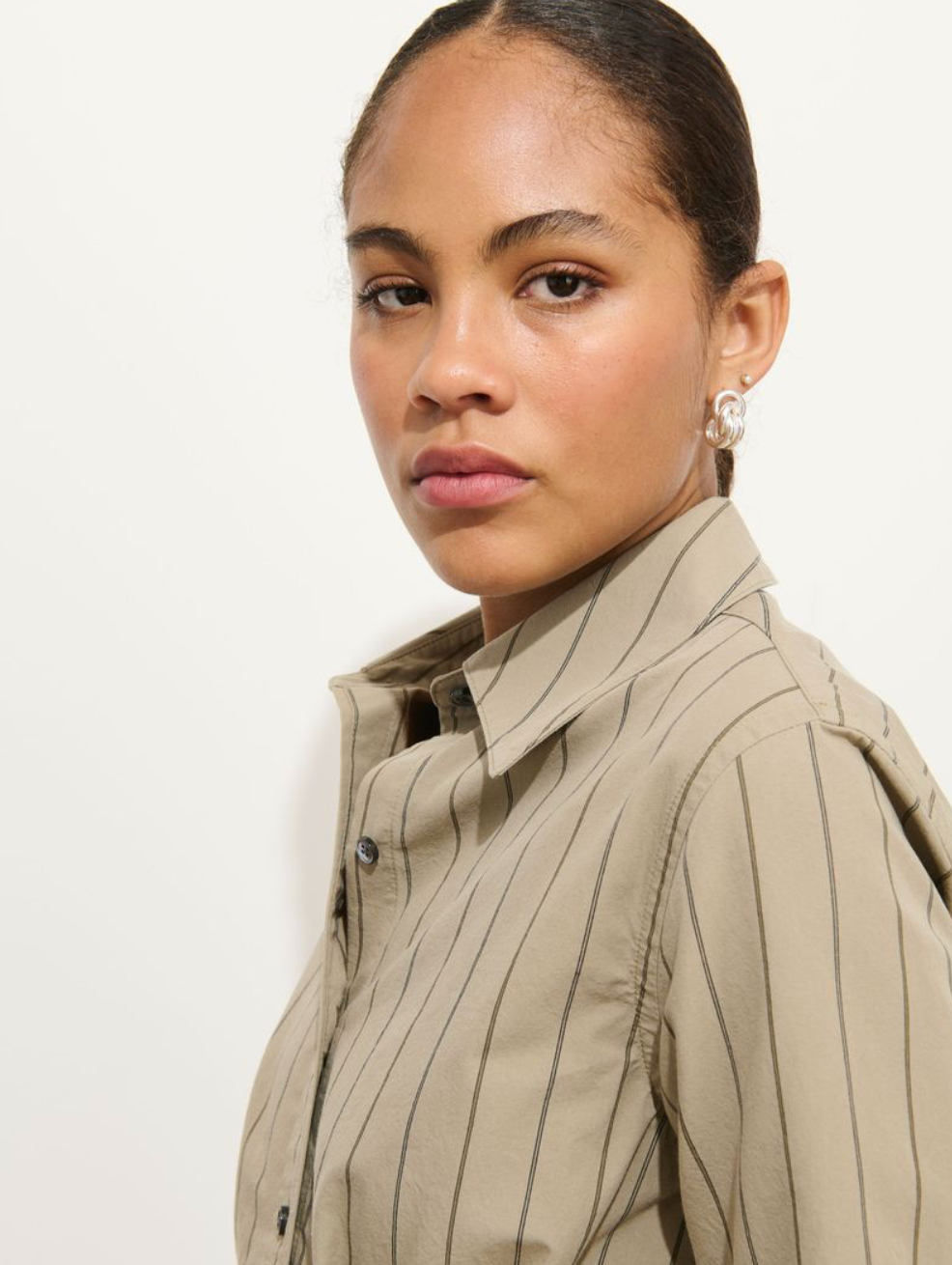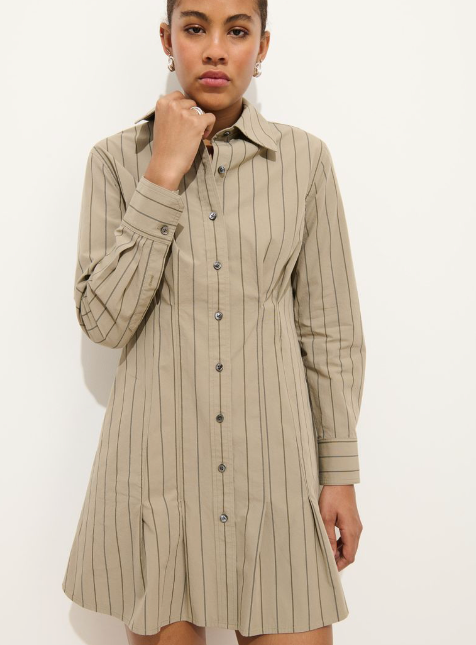 Rozanne Shirtdress In Poplin Stripe Khaki Stripe