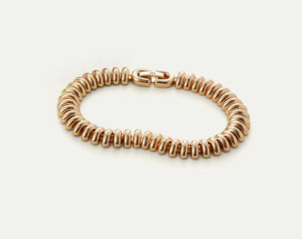 A gorgeously fluid bracelet that boasts a ribbed texture through a unique caterpillar construction. Vintage-inspired foldover closure, finished in high-polish gold.