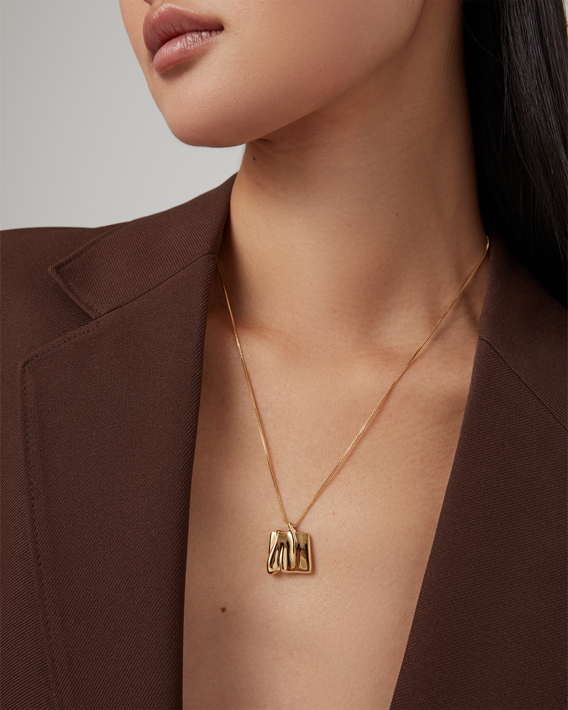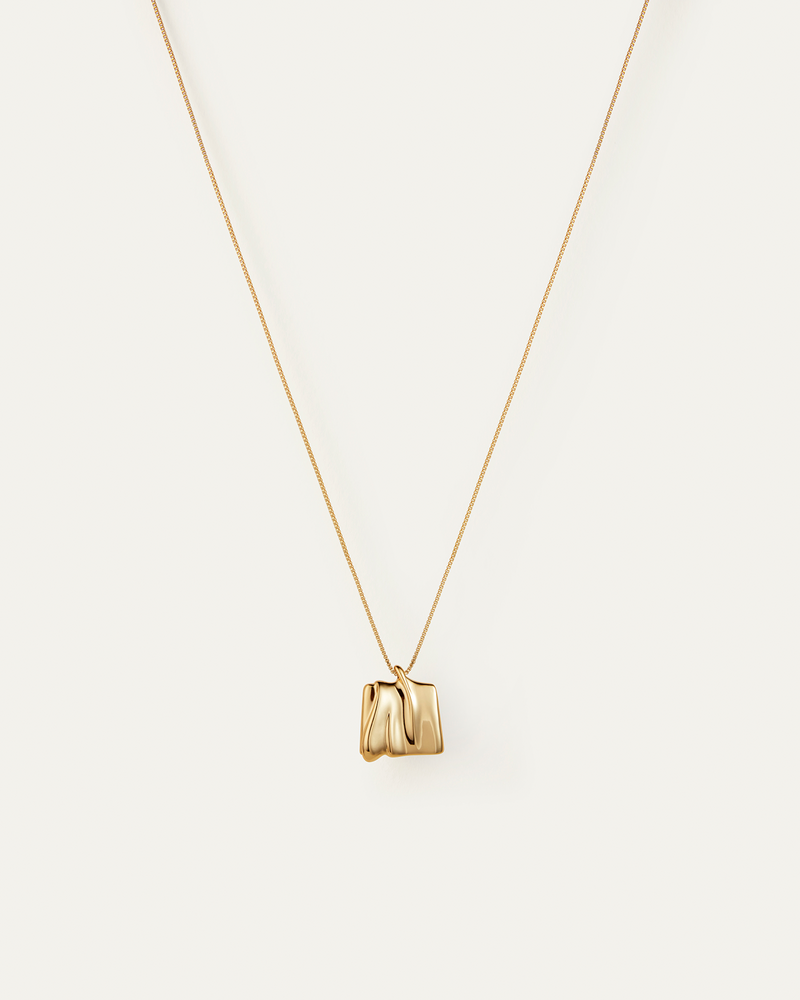 Mirroring a sand dune shaped by natural winds, this organic square pendant glides along a delicate gold box chain. This design includes a shortening ring, making it easy to adjust and wear at 20" or 22". Finished in high-polish 14k gold.