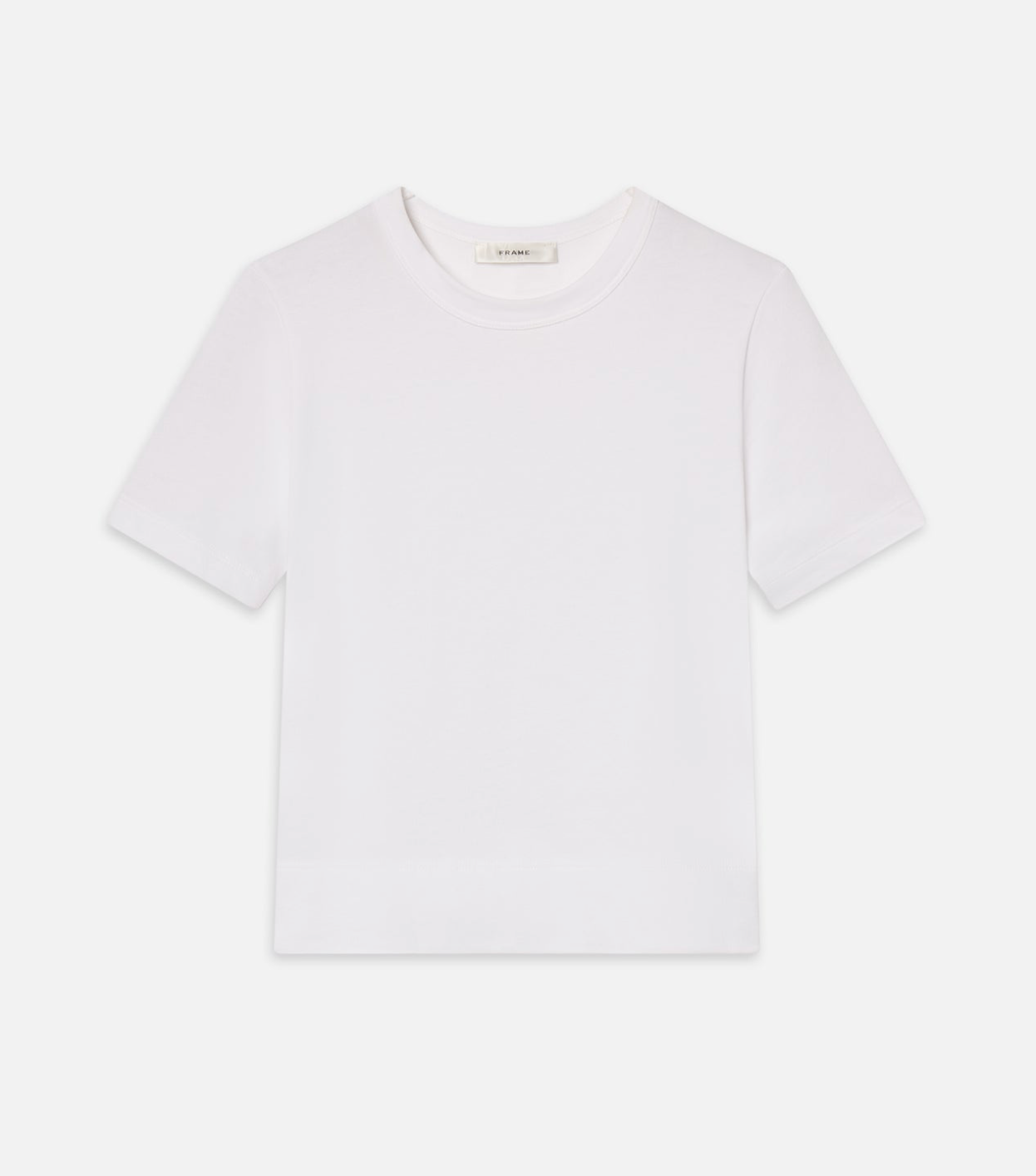 The Boxy Tee is crafted from 100% cotton in a new, slightly cropped fit with a clean, structured shape—designed to pair effortlessly with mid- to high-rise denim.