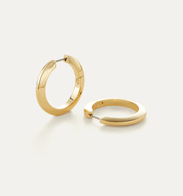 These best selling everyday hoops create a flattering halo of light around your face. A custom, perfectly circular, small modern hoop. Opens and closes with a hinge. Pull at back hinge to open. Push to lock onto post and listen for a "click" to ensure it's locked properly. Finished in high-polish gold.
